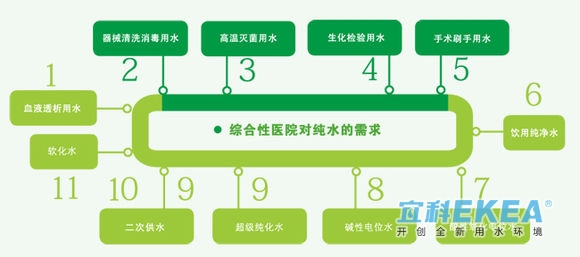 國內(nèi)醫(yī)療純水的實現(xiàn)主要依賴進口單科室純水機,少數(shù)采用國產(chǎn)單科室純水機,隨著醫(yī)療行業(yè)日益細分的科室增多,各科室對于純水的需求也呈上升趨勢,單科室純水機的不足也逐漸暴露出來,出現(xiàn)不便于集中管理,且投資分散、成本較高、水質(zhì)安全欠保障等問題。國際上發(fā)達國家的中央純水使用已在上世紀就已大面積應用于大型醫(yī)療機構(gòu),歐美和日本等發(fā)達國家醫(yī)用中央純水系統(tǒng)工藝的已占百分之八十以上,其經(jīng)濟效益和先進性已得到驗證。對于大型新建綜合醫(yī)療機構(gòu),醫(yī)用中央純水系統(tǒng)替代舊有的分散單科室獨立供水設備已是大勢所趨。通過中央凈化、分質(zhì)供水系統(tǒng)、解決全醫(yī)院所有用水。凈化水主機對自來水進行深度處理,使其到達直飲水及各檢驗科室可以直接使用的基本水質(zhì)標準,再通過全內(nèi)循環(huán)管網(wǎng)、終端處理裝置供給各科室使用。