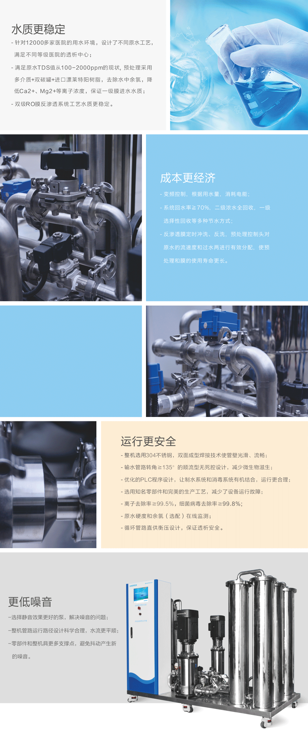 -水質(zhì)符合YY0572-2015《血液透析和相關(guān)治療用水》要求,符合美國AAMI/ASAIO血液透析用水標(biāo)準(zhǔn)