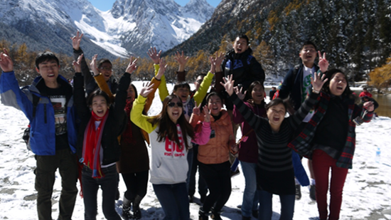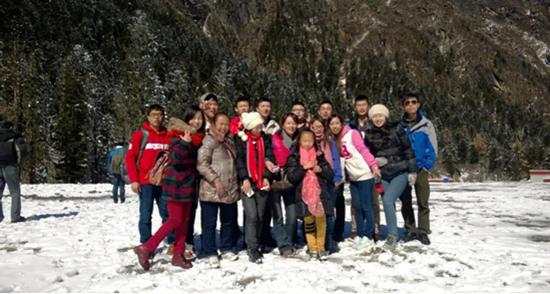 我們一路擺各種POSS照像,團個雪球攻擊對方,笑聲歡呼聲不斷,同行的黃姐姐提出一定要堆一個雪人,圓她兒時的夢想。大家積極響應(yīng),兩個小女孩兒也是跑上跑下,收擾積雪團雪球。我們的雪人很快成功了,可惜的是沒有帽子呀?jīng)]有圍巾呀?jīng)]有掃帚呀,小學(xué)教材里的雪人不是都有這些嗎?雪人,下次我給你帶來。