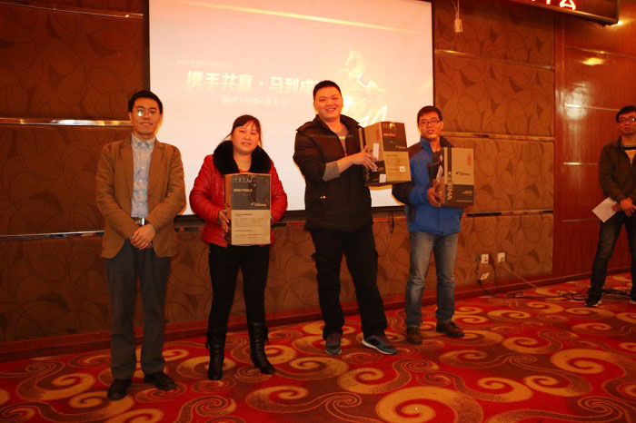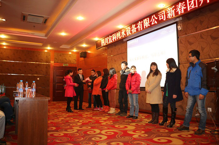 在2014年公司團拜會上李總總結(jié)了公司過去一年的主要業(yè)績及成果,并對新的一年公司的發(fā)展進行了規(guī)劃與展望。在李總慷慨激昂的演講下,全體員工深深的感受到了自己作為宜科人的責任。公司的發(fā)展離不開每位員工的付出,公司的美好明天依托著每位員工的努力。每位員工的汗水公司都看在眼里,公司對優(yōu)秀員工的頒獎只是公司在表達您們對公司的辛勞付出。 李總為我們2014年度9位優(yōu)秀員工頒獎。 年會上最激動人心的時刻當然是抽獎啊,人事總監(jiān)楊總為獲獎?wù)哳C獎并留言。